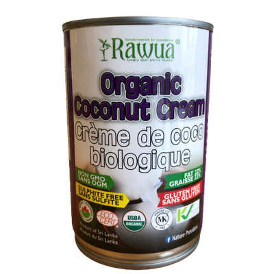 Crème de noix de coco biologique non sucré, sans OGM, sans gluten et sans sulfites. Peut être utilisé pour la cuisson, les caris et les desserts. Produit du Sri Lanka.