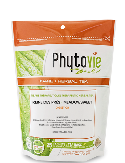 Chaque sachet contient 1.5g herbe séchée de Filipendula ulmaria (Reine des Prés)..