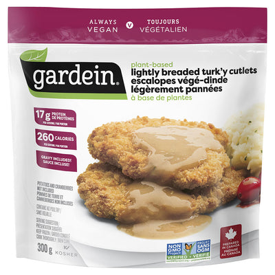 Des escalopes tendres enveloppées dans une panure croustillante, c'est le début d'un délicieux repas ! Légèrement panées, ces solutions de rechange à base de plantes aux escalopes de dinde sont idéales pour le souper ou même pour votre prochaine réception des Fêtes, accompagnées de purée de pommes de terre, de sauce et de sauce aux canneberges. Délicieux! Elles ont 17 g de protéines par portion, font partie du projet sans OGM vérifié, sont kasher, sans produits laitiers et préparées au Canada.