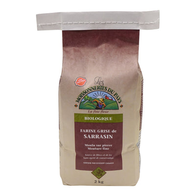 Cette farine à mouture fine est obtenue par la transformation du grain entier et est moulue sur meule de pierre. Non raffinée, elle est parfaite pour confectionner d'excellentes crêpes ou galettes de sarrasin. Produit du Québec.