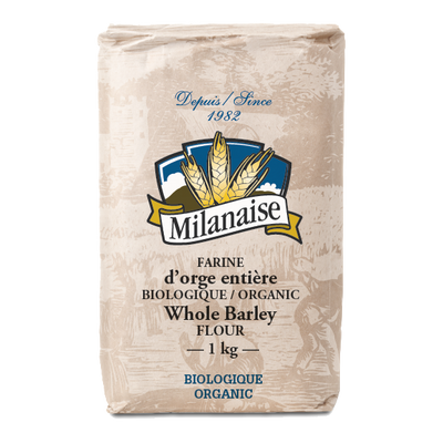 Cette farine est produite à partir d’orge biologique. Parmi les grains céréaliers, l’orge fait figure de champion en matière nutritive. La farine d’orge peut s’utiliser en panification pour réaliser des galettes. Idéal pour : biscuits, crêpes, gâteau, gaufres, muffins, pains et pâte à tarte. Produit du Québec.