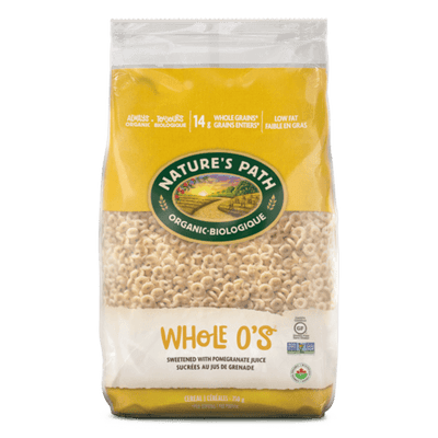 Nature's Path a créé une version biologique du classique des céréales que nous aimons, sans les ingrédients nocifs. Naturellement sucrées avec du jus de grenade, ces céréales sont un rayon de soleil dans votre bol du matin et constituent une excellente base pour les mélanges ! Composées uniquement de cinq ingrédients simples et complets, les Whole O's sont sans gluten, super croustillantes et ne se détrempent pas dans le lait. Produit du Canada.