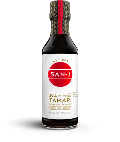 Le processus de fermentation confère au San-J Tamari de grandes propriétés de rehaussement de la saveur. Ajoutez le Tamari aux soupes, aux sauces et aux ragoûts. Utilisez-le comme marinade et dans les plats sautés. Réduisez votre apport en sodium et profitez de toute la saveur de votre plat en ajoutant 1 c. à thé de Tamari sans gluten à teneur réduite en sodium (237 mg de sodium) au lieu de 1/2 c. à thé de sel (590 mg de sodium). Produit des États-Unis et du Japon
